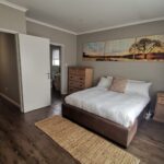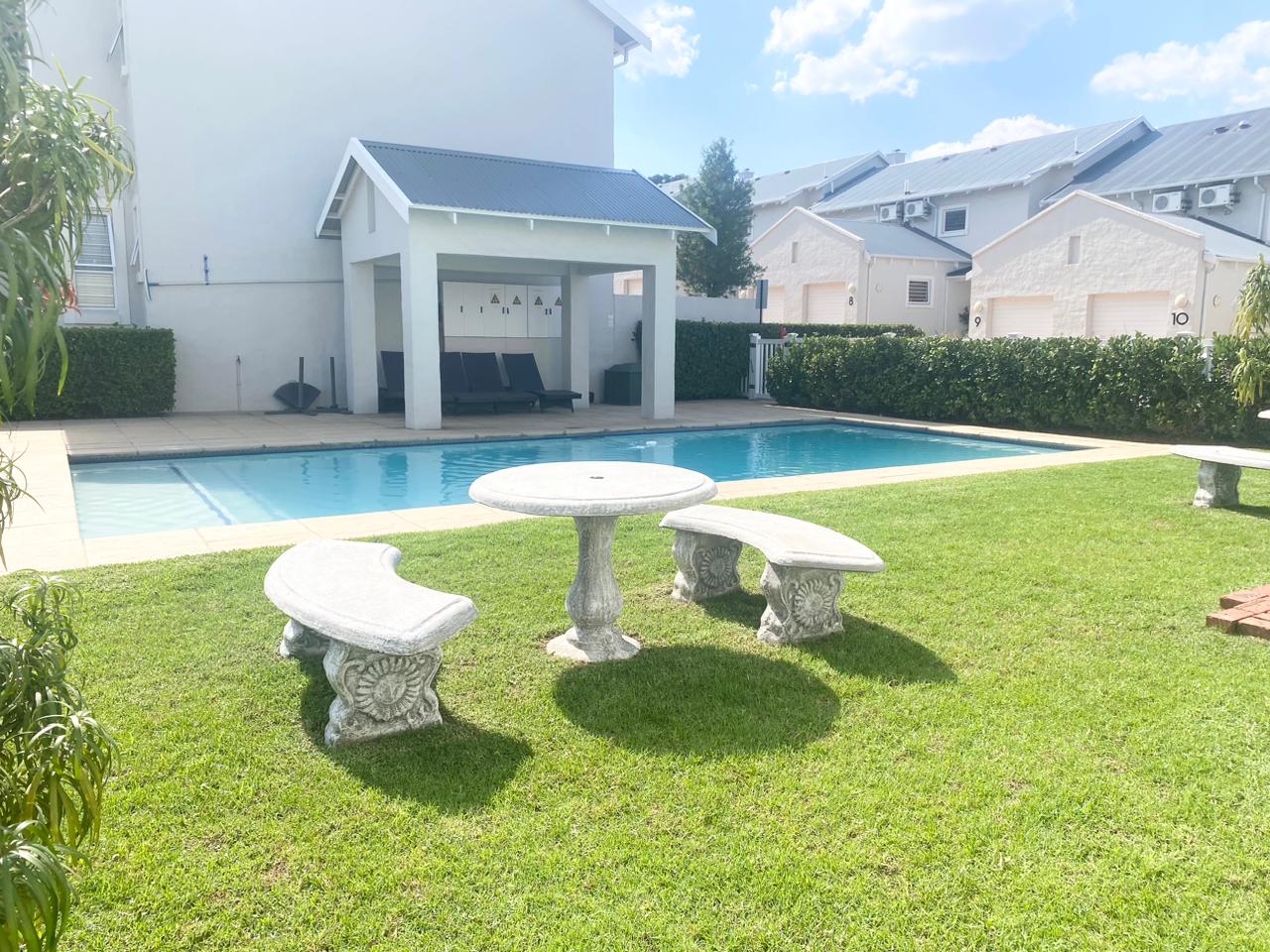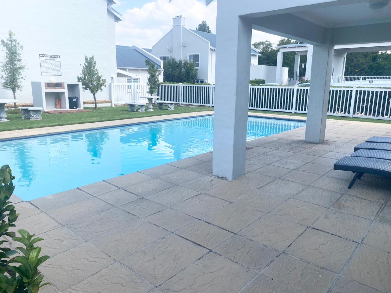 Townhouse duplex in modern style, A lovely, safe and secure townhouse in Sandton's sought-after Petervale neighborhood. Conveniently located near major roads and highways, as well as a variety of amenities. Lock up, leave, and have peace of mind with 24 hour security and indoor activities. The warm home on the lower level welcomes you with an open plan lounge, dining, and kitchen that leads to the warm, ambient patio and gardenette on either side. The lower level also has a visitor restroom. This home has a warm rustic theme. Two modern spacious bedrooms with ample BIC and two bathrooms await you upstairs. Property Highlights: Property Highlights: Gardenette patio Aluminum windows Automated parking garage Communal Swimming Pool